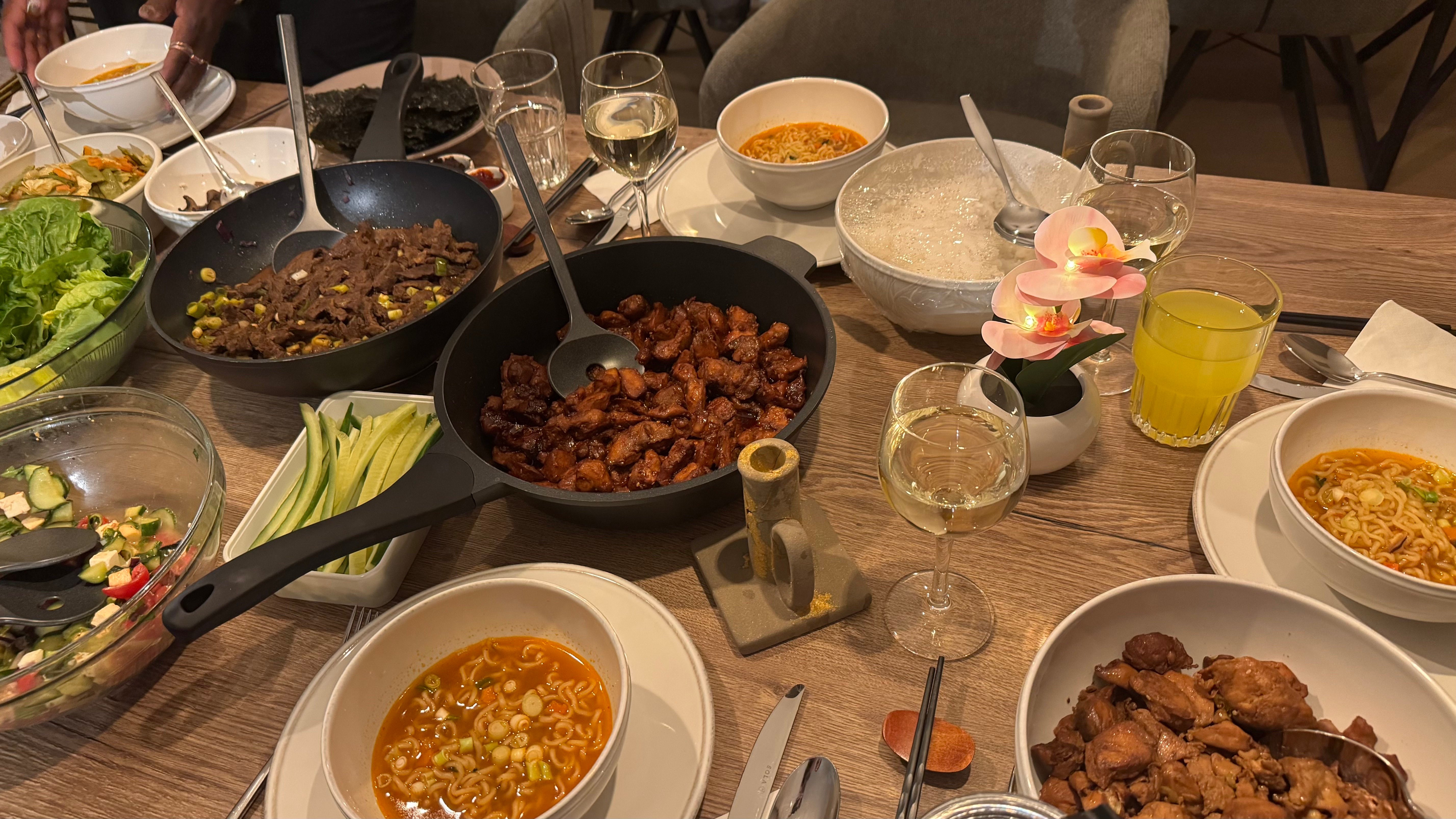 De zus van Anouk Sonja, heeft ons allemaal in de watten gelegd met heerlijke Koreaanse gerechten en heerlijke fruitdrankjes.